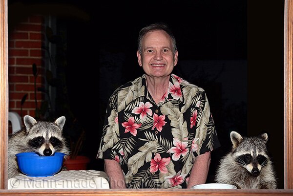 Charly Mann with two of his raccoon friends